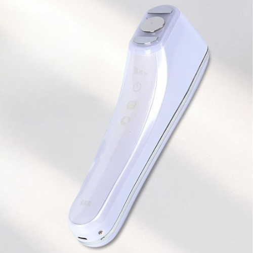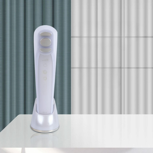 Plaats het apparaat op de huid en beweeg het langzaam in rechte lijnen of opwaartse bewegingen. Blijf per zone enkele minuten werken (bv. 3–5 min per gezichtsgedeelte).